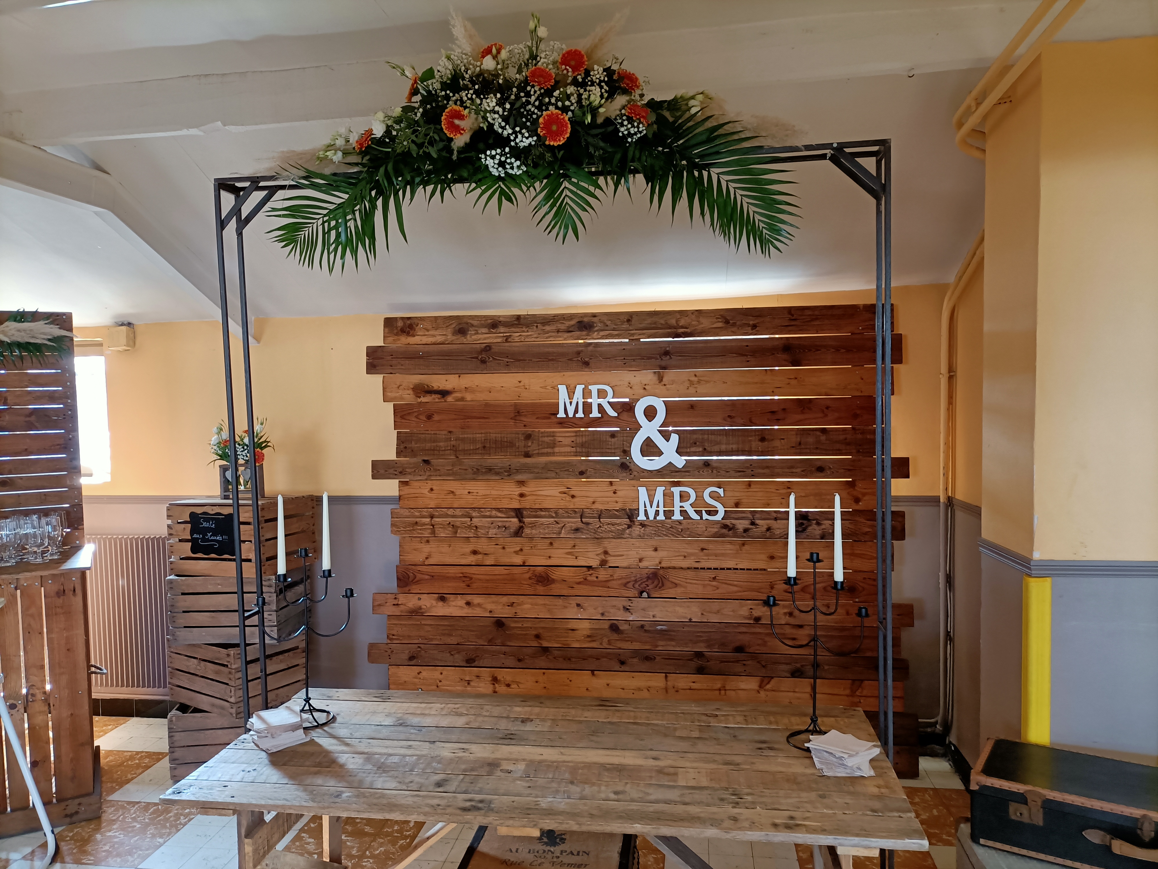 Nous avons eu quelques décorations de rèveries et bois dont un long canapé, des sièges et des luminaires : le tout rendait super bien sur la scène de la salle de notre mariage. mention spéciale au livreur qui a la pêche en plus d'avoir le sourire pour décharger et charger le camion. un petit bémol cependant concernant le dossier du canapé carine : il est assez fragile, disons qu'il faut faire attention à ne pas placer quelqu'un d'enveloppé contre ce dossier. donc ça a fait un peu peur..de ce fait, les enfants ont d'avantage profité de ce canapé, cool pour eux :)